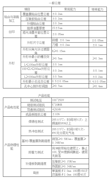 > 产品规格 > FPC > 技术能力